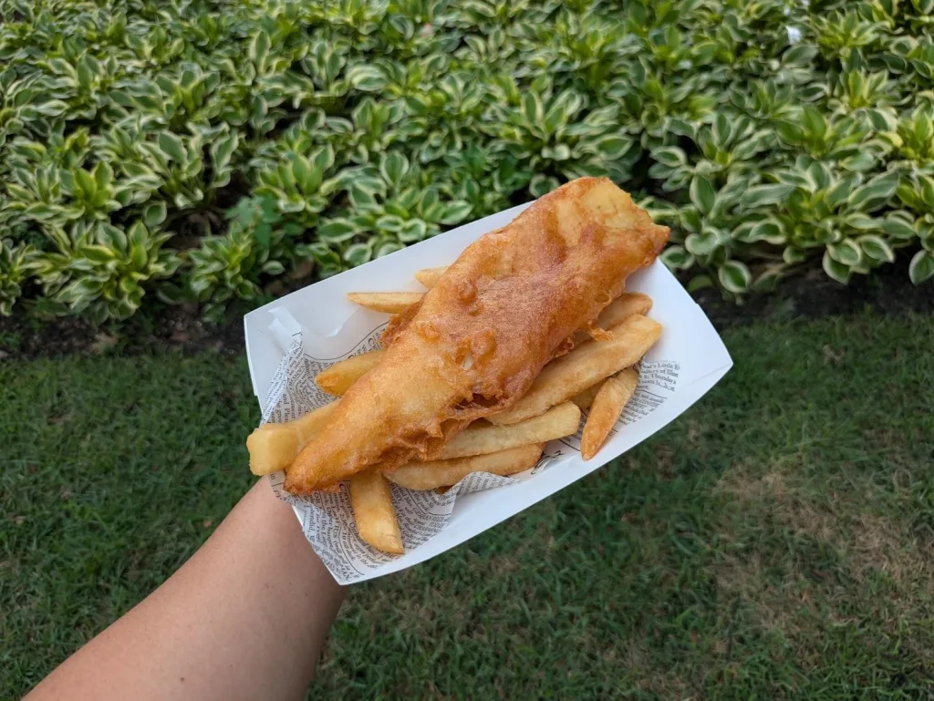 The worst offender, though, is the shrinkflation. The fish has decreased in size, disguised by an increase in the batter thickness. The amount of chips on the plate has been slashed. Disney also removed the hand pies from the menu.