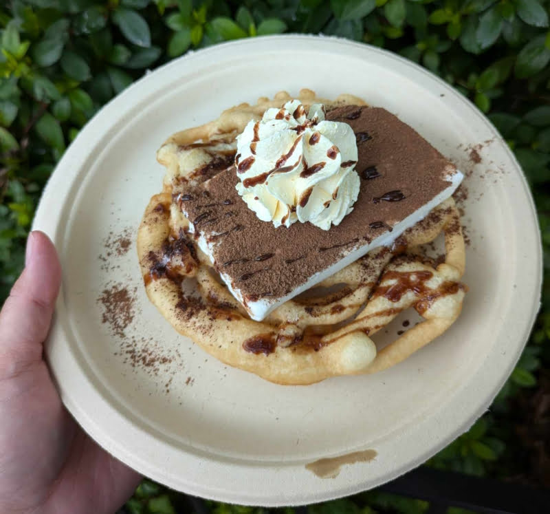 We were excited to see a Tiramisu Funnel Cake ($12.00) as this year’s festival offering! It came out warm and topped with a thin block of vanilla ice cream, chocolate rum sauce, cream cheese whipped cream, and a dusting of cocoa and espresso powders. The sweet toppings perfectly complemented the bitter cocoa and espresso flavors. We enjoyed this one, but wouldn’t say it’s a standout dessert. Try it if you want something a bit different, but don’t feel like you’re missing out if you skip it.