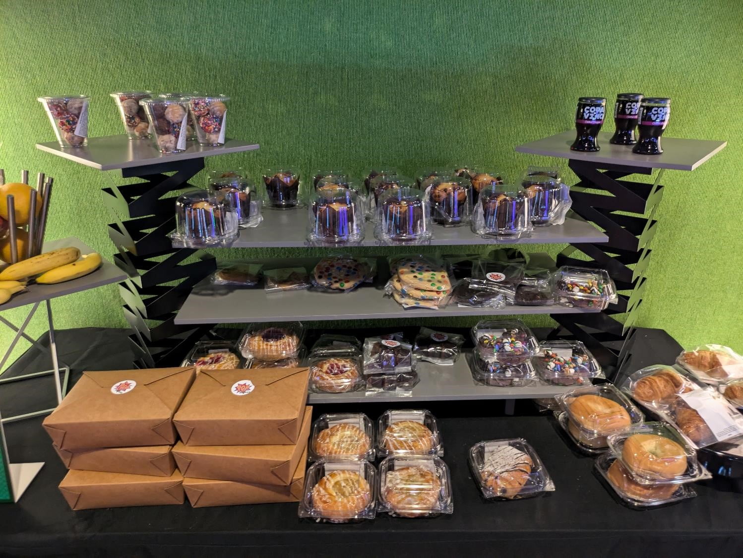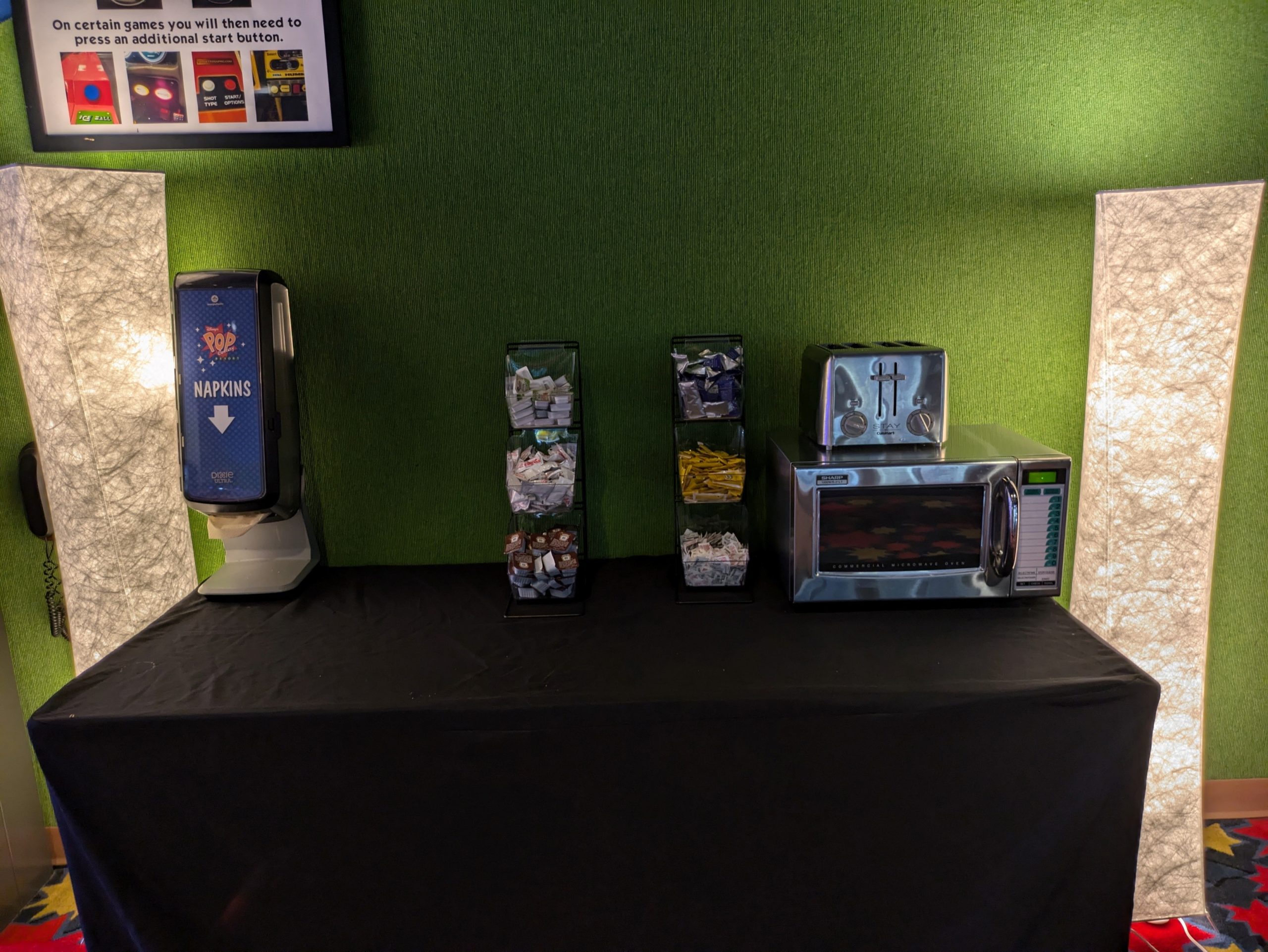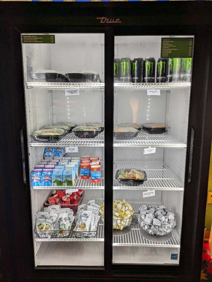 For those on the go, the Fast Forward Arcade offers grab-and-go options from 7:00 AM to 10:00 PM. Here, you can find cold sandwiches, salads, pastries, and bottled drinks. Additionally, hot dogs and pizza are available from 10:00 AM to 4:00 PM, as informed by a friendly cast member.