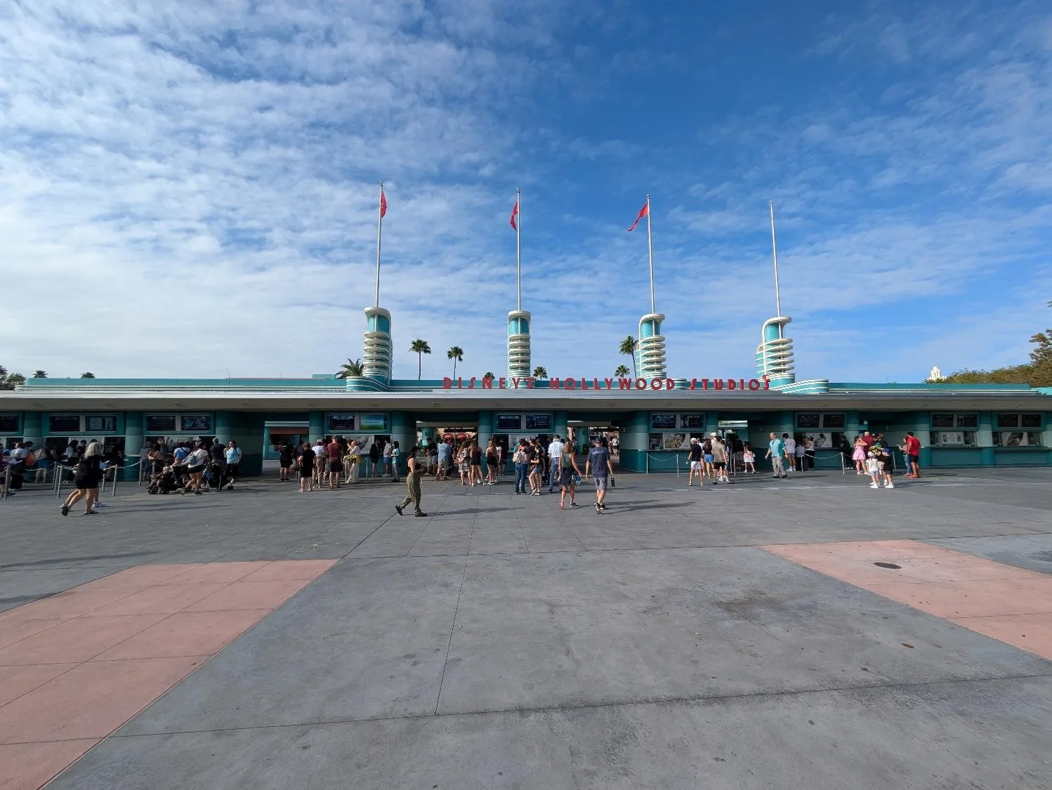 We chose Hollywood Studios with plans to park hop to Epcot. We arrived a little before 10 AM, a time when the parking lot entrance usually has a line, but there was hardly anyone there. We were able to park within 10 rows from security and the gates. However, Disney was clearly expecting large lines as both security areas were open, and there were extra cast members prepared to direct foot traffic from the buses and Skyliner.