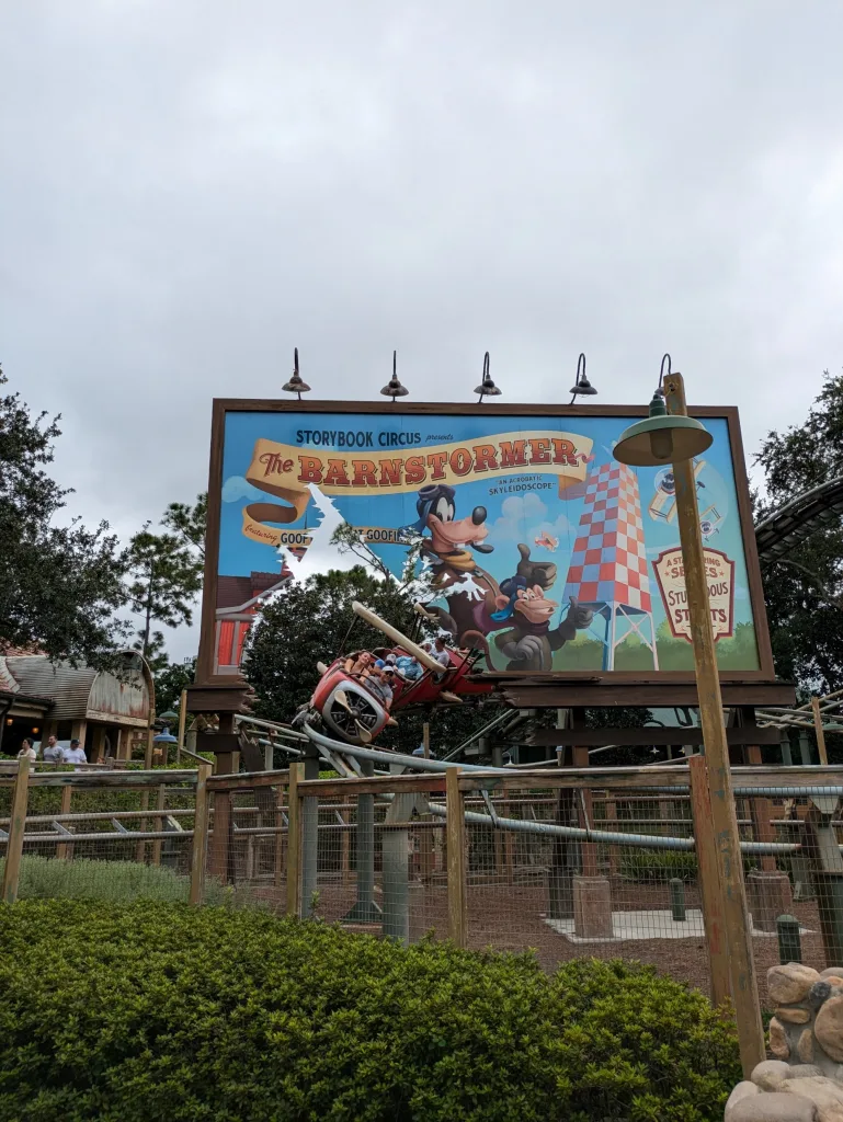 For those of you who have never experienced it, or even know what it is, itâs a junior roller coaster in the Storybook Circus region of Fantasyland in Magic Kingdom. It features Goofy as âThe Great Goofini,â a performer in an aerial stunt show. The coaster trucks resemble little propeller-driven biplanes that make twists and turns, and even a drop or two, along a short metal track. The entire ride lasts about a minute, with half of that being the climb to the top of the hill. The following 40 seconds, oh boy, are a hoot.