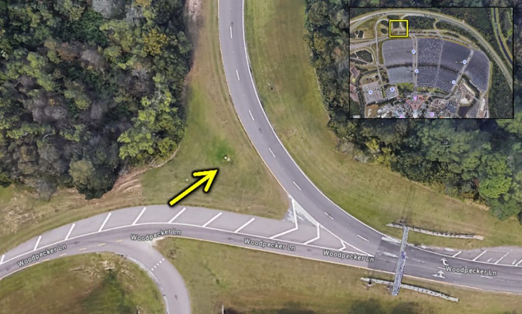 Today, when exiting the EPCOT parking lot near where Woodpecker Lane splits, we noticed a mist drifting across the road. We thought it might be a small, localized downpour. However, when we rounded the corner we saw a giant geyser of water erupting from the ground and up into the air.