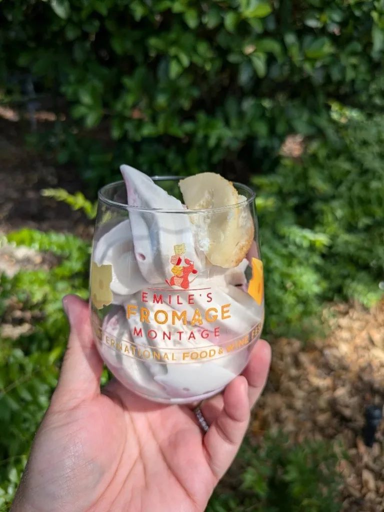 The 2024 International Food and Wine festival treat is a soft serve blueberry and vanilla swirl topped with a tiny slice of cheesecake. They serve it in a cute souvenir cup with a "Emile’s Fromage Montage" logo on the side. We loved this year's completer treat for the Food and Wine festival. The soft serve is tasty and particularly refreshing on a hot day. The cheesecake was delicious and did not disappoint. The festival ends on November 23rd so hurry if you want to try this one!