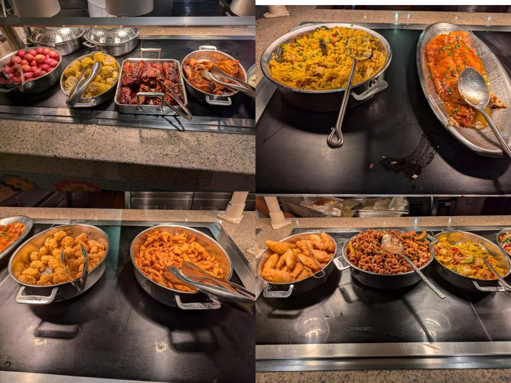 The first hot side had your dinner rolls, mashed potatoes, baked chicken, bbq ribs, corn, and red potatoes, along with steamed seafood offerings of mussels, clams, and shrimp. If you’re in the mood for a seafood boil/steam-pot type of meal this is the side for you.