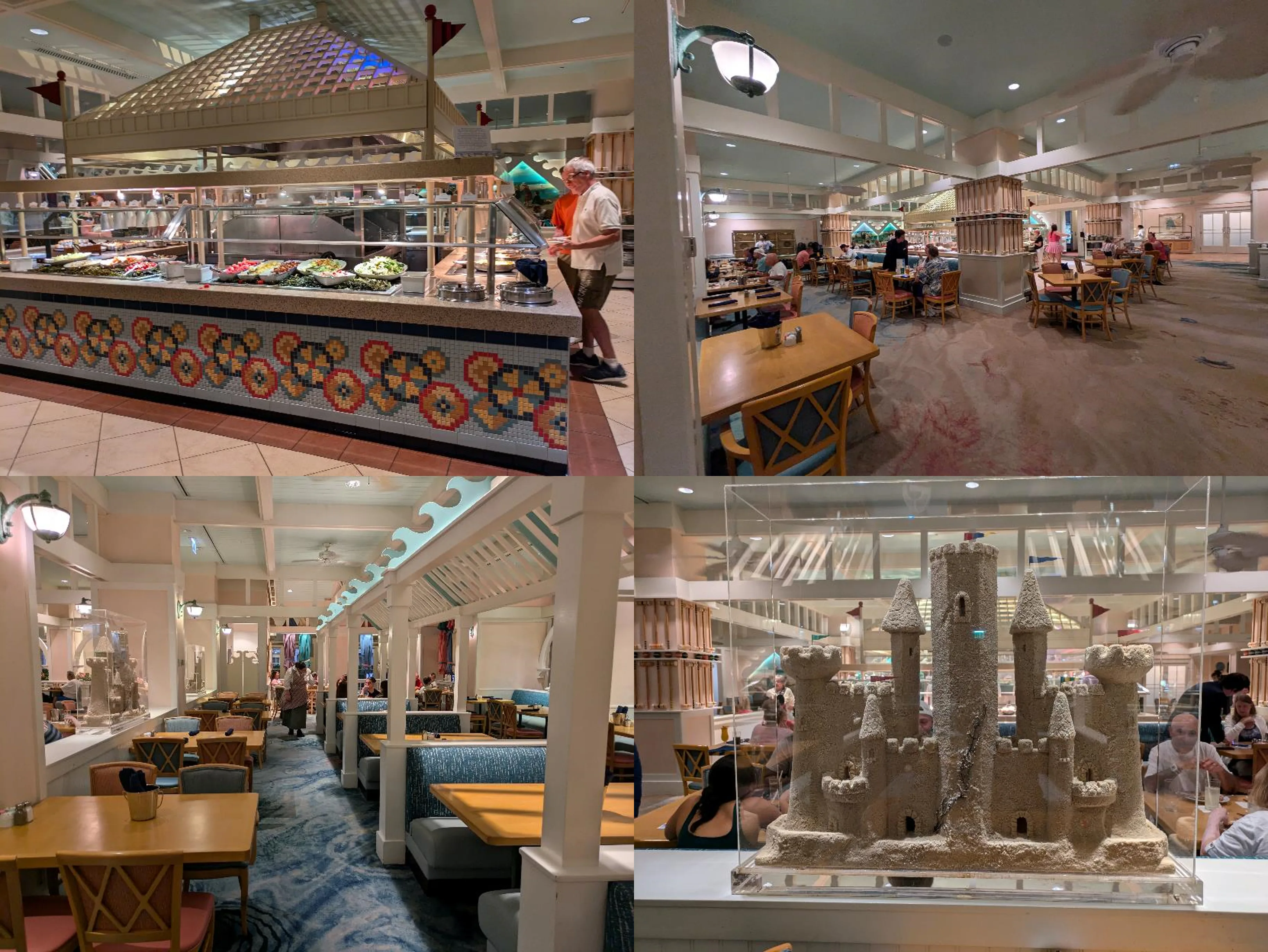 Cape May Cafe is the New England inspired restaurant at Disney’s Beach Club Resort. It features an all-you-care-to-enjoy buffet for breakfast and dinner. Breakfast (which we did not try this visit) is a character meal known as Minnie’s Beach Bash Breakfast. You can meet Minnie, Goofy, Donald, and Daisy, dressed in their beach attire.